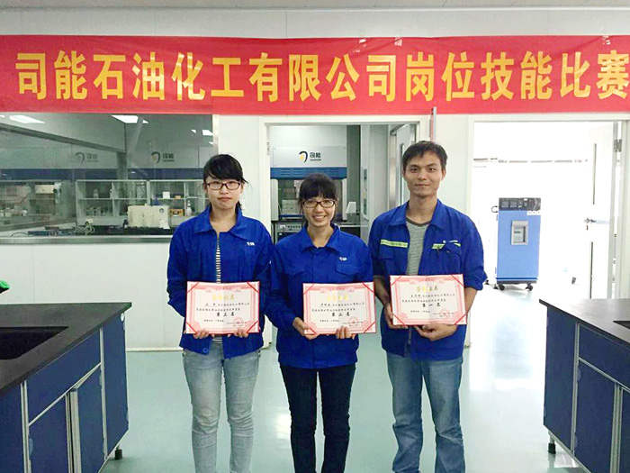 ? ? ? ?10月29日至11月13日,司能公司舉辦了三項崗位技能比賽活動,共有30人參加了此次比賽。比賽以“苦練基本功,賽出高水平”為主題,三項比賽分別是油品檢測、200L油品分裝和4L線生產實操,經過激烈角逐,謝永伯、謝忠意、王文明分別獲得調油班、分裝班和研發(fā)中心項目比賽第一名。通過以賽選標兵、樹榜樣、以賽發(fā)現薄弱環(huán)節(jié)為目的,改進薄弱項,把工作各個環(huán)節(jié)做到更嚴、更實,既提高工作效率又保證產品質量。