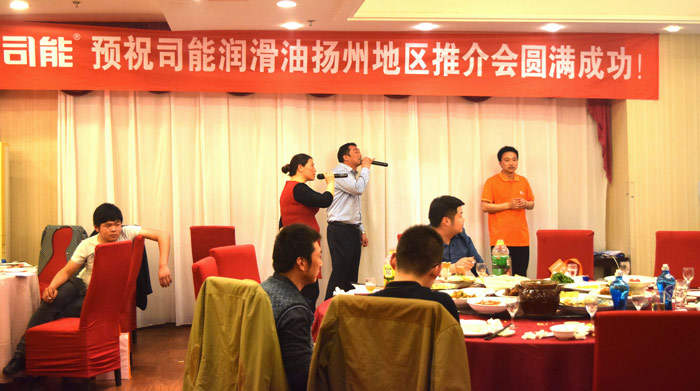 司能經銷商揚州天沁工程設備有限公司趙總發表了歡迎致辭。他講到,司能潤滑油自進入揚州市場以來,非常感謝朋友們一直以來的支持和厚愛,相信在各位朋友的共同努力下司能潤滑油在揚州地區一定會快速成長。