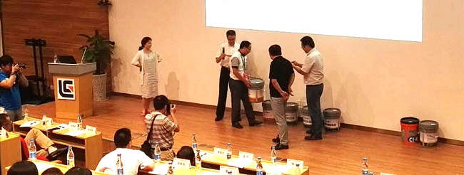 ? ? ? ?會上發布的16L及18L新產品,是柳工牌潤滑油根據近期市場變化,為了滿足客戶需求而推出的產品。新品的推出能讓經銷商更好的為三包外客戶提供服務,為機械提供更好的潤滑效果。