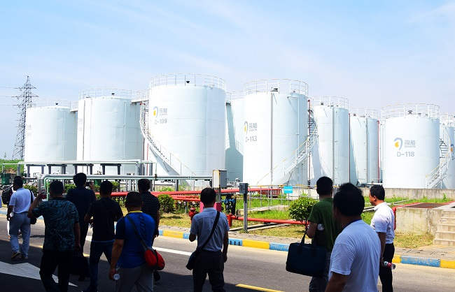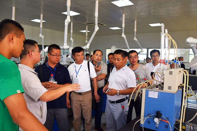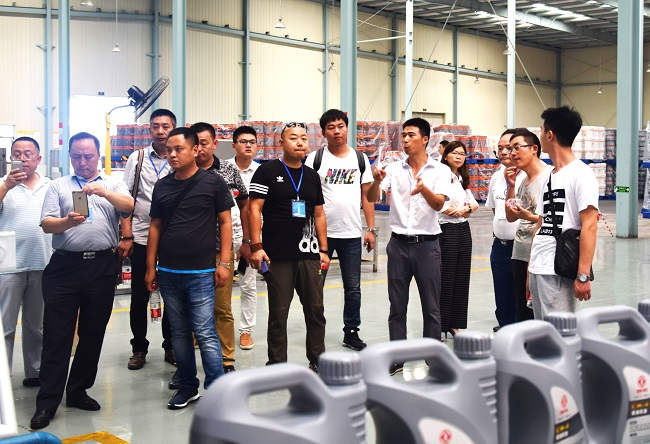 通過(guò)司能雄厚實(shí)力的分享與演說(shuō),大家對(duì)司能充滿了無(wú)限好奇。19日早晨近180余人報(bào)名參觀溧陽(yáng)工廠。當(dāng)天溧陽(yáng)氣溫較高,但嘉賓們熱情向往不畏高溫頂著烈日來(lái)到工廠參觀考察、洽談交流。參觀嘉賓分成3個(gè)小組,依次參觀了研發(fā)中心、油樣儲(chǔ)存室、灌裝線、儲(chǔ)油區(qū),現(xiàn)代化自動(dòng)設(shè)施,參觀嘉賓紛紛掏出手機(jī)拍照留影,嘉賓被工廠先進(jìn)的自動(dòng)化生產(chǎn)線所吸引,充分展現(xiàn)了司能的雄厚實(shí)力和先進(jìn)技術(shù)水平。