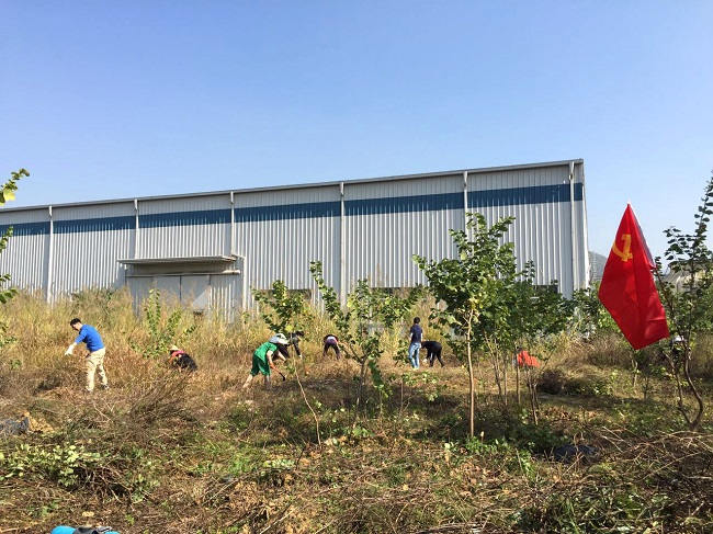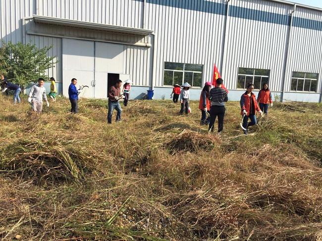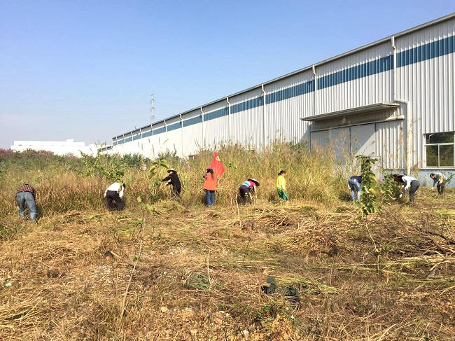 ? ? ? ? 雖然已過立冬,但正午的太陽仍舊炙烤著大地。志愿服務隊員頂著烈日、攜帶除草工具開始勞動。公司管理層何景奇、范燕玲、廖亮帶領共產黨員、志愿服務隊員們在各自分工區域干得熱火朝天。盡管雜草多、清除的工作量非常大,但大家發揚不怕苦不怕累的精神,顧不上擦汗,顧不上喝水,一鼓作氣完成了勞動任務。