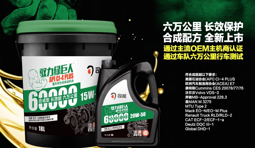 此次會議最吸人眼球之處在于“馭力綠巨人”CI-4 PLUS 60000公里柴油機油及凈凡酯類全合成汽機